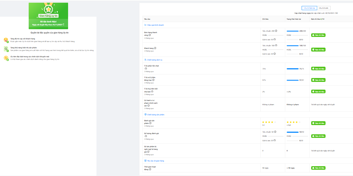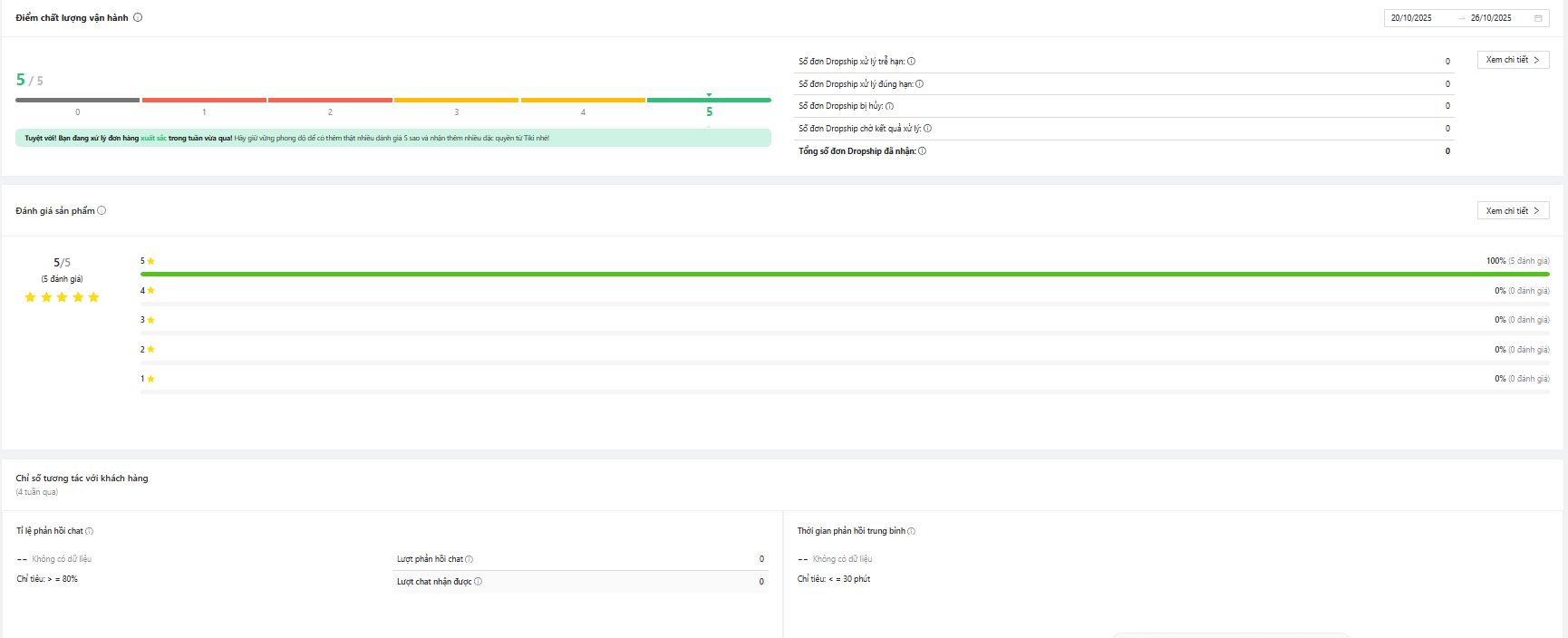 Giúp nhà bán theo dõi và cải thiện chất lượng vận hành của gian hàng.